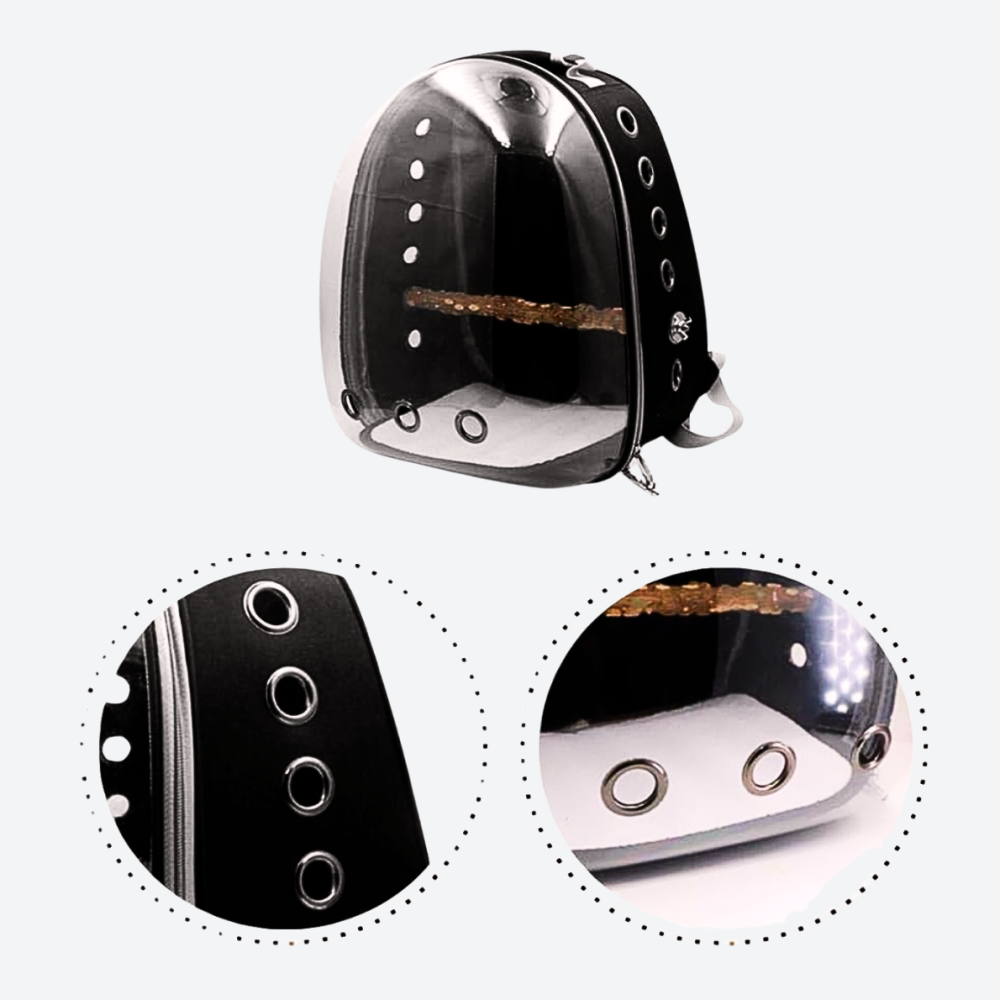 - فتحات تهوية متعددة على جانب حقيبة الظهر، توفر دوران هواء مريح، ليتنفس حيوانك الأليف بشكل مريح.